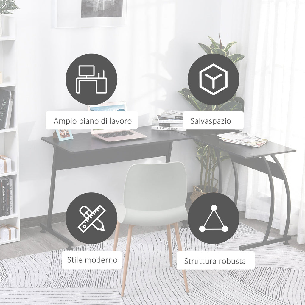 Träumen Sie von einem super organisierten Arbeitsplatz? Dieser Schreibtisch hat eine große Arbeitsfläche, auf der Sie Ihren Computer, Ihre Dokumente, Ihren Monitor und Ihre Tastatur anordnen können. Aber auch einige Blumenvasen, ein Rahmen oder eine Erinnerung an Ihren letzten Urlaub. Dank seiner "L"-Form haben Sie den nötigen Platz, um bequem zu arbeiten. Die Struktur hat einen minimalen und essentiellen Stil, eingebaute Spanplatten mit Melamin-Finish und Metall. Perfekt für Liebhaber von Ordnung und totalem Schwarz!