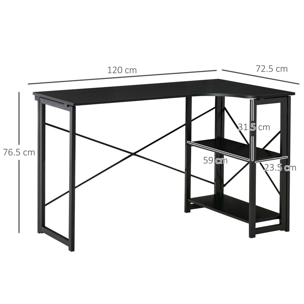 Eckschreibtisch 120x72,5x76,5 cm aus MDF und schwarzem Metall