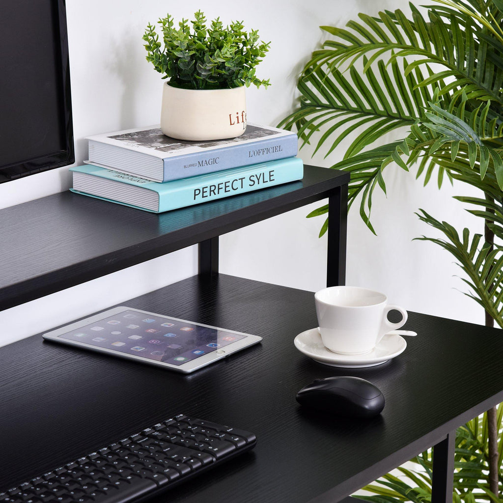 Schreibtisch mit Ablage 140 x 60 x 93 cm aus schwarzem Stahl
