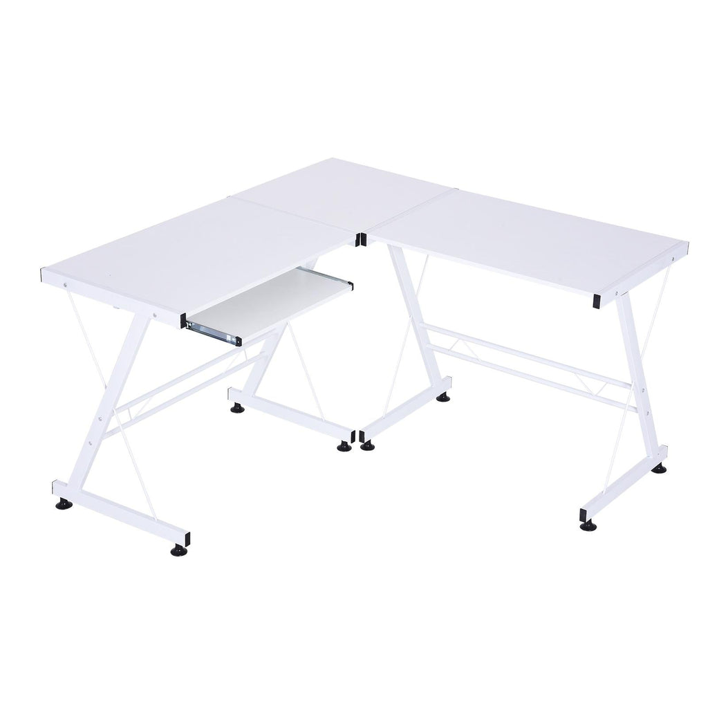Büro-Arbeitstisch, Arbeitsstation, Home-Office-Arbeitsstation, L-förmiger oder gerader Eckschreibtisch, wandelbarer, multifunktionaler, erweiterbarer, ergonomischer, langlebiger Tastaturbereich, weiß