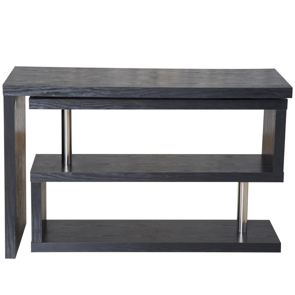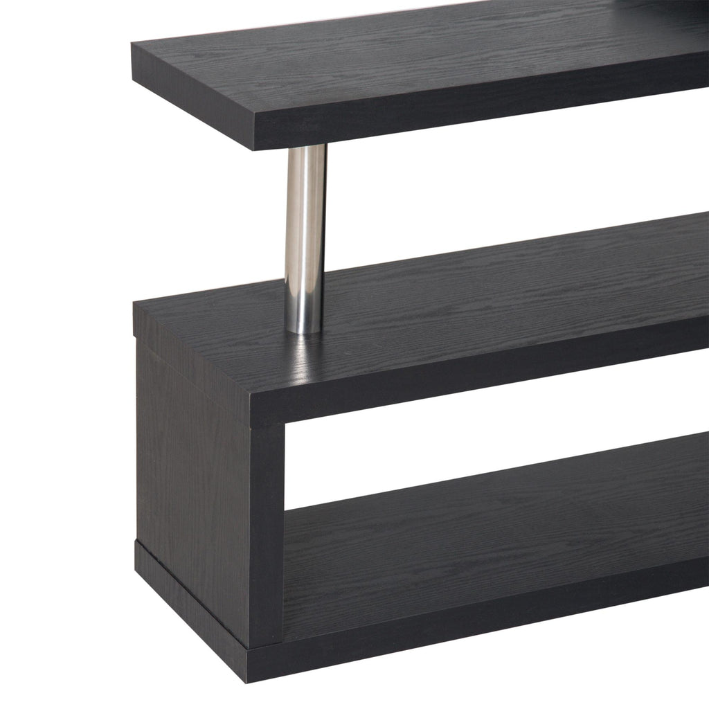 Die beiden Seitenregale machen die Struktur nicht nur modern und originell, sondern bieten auch viel Platz für Ornamente, Bücher und verschiedene Dekorationsgegenstände