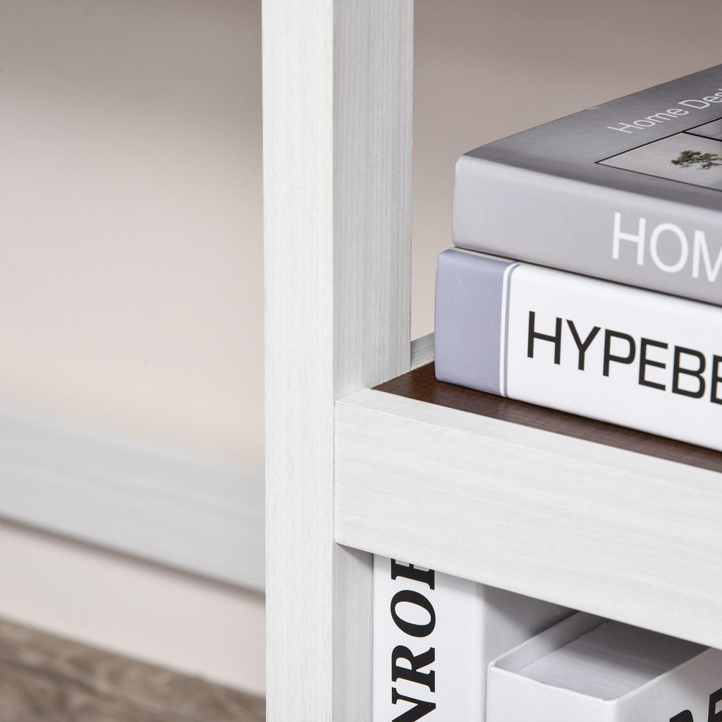 Der 2-in-1-Schreibtisch kombiniert eine große Arbeitsfläche mit einem 2-stufigen Regal und bietet Ihnen viel Platz zum Arbeiten und Aufbewahren Ihrer Alltagsgegenstände. Es ist ein elegantes und funktionales Möbelstück für Ihre Zimmer mit moderner und zeitgemäßer Einrichtung, Sie können es als Schreibtisch für Ihr Schlafzimmer, Arbeitszimmer oder Büro verwenden. Dieser Holzschreibtisch ist stabil und sicher und garantiert eine lange Lebensdauer.