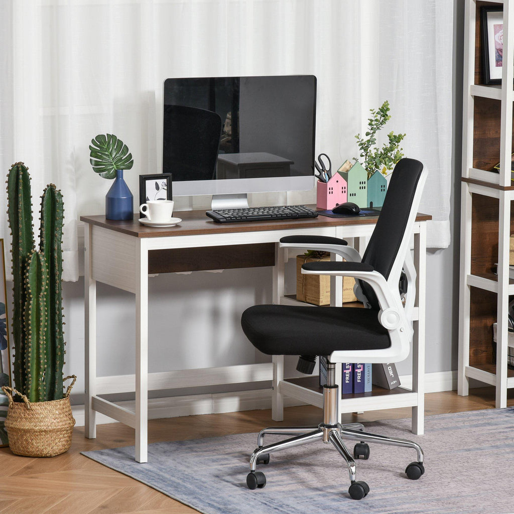 Schreibtisch-PC-Halter 110 x 48 x 76,2 cm in dunklem Nussbaum und weißem MDF