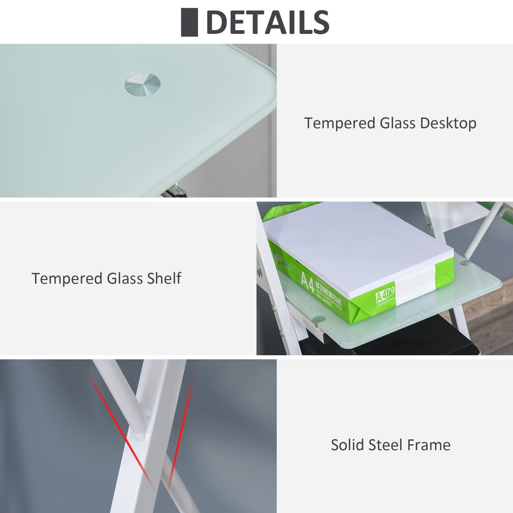 Schreibtisch für PC 116,5x54,5x100 cm mit Regalen und weißer Glasplatte