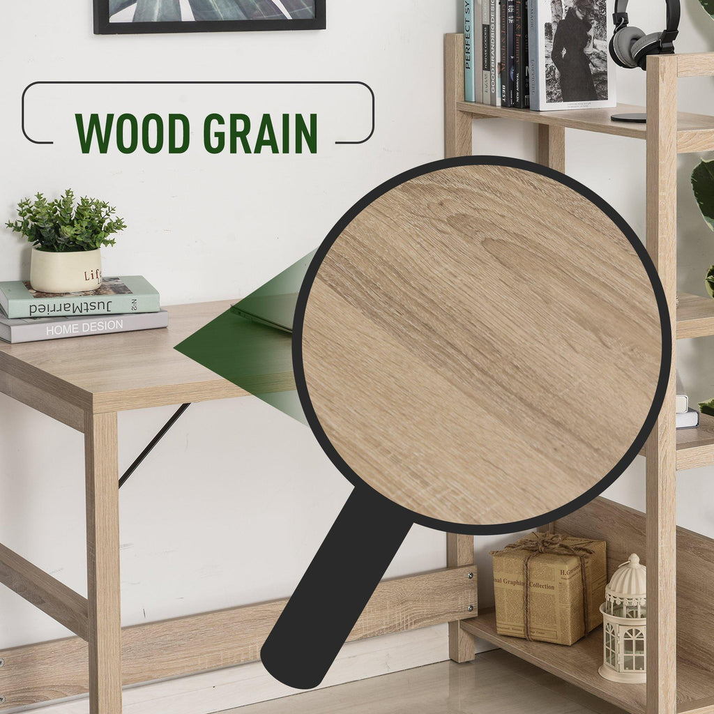 Schreibtisch kombiniert mit Bücherregal von , mit Holzmaserung, schlichten Beinen, modern, passt perfekt in die Einrichtung Ihres Zimmers, Arbeitszimmers oder Büros. Der große Schreibtisch und die Seitenablage bieten ausreichend Platz für eine geordnete Aufbewahrung. Verstärkter Rahmen für zusätzliche Festigkeit. Richten Sie zusammen mit Ihr Zimmer, Ihr Büro oder Ihr Atelier elegant ein!