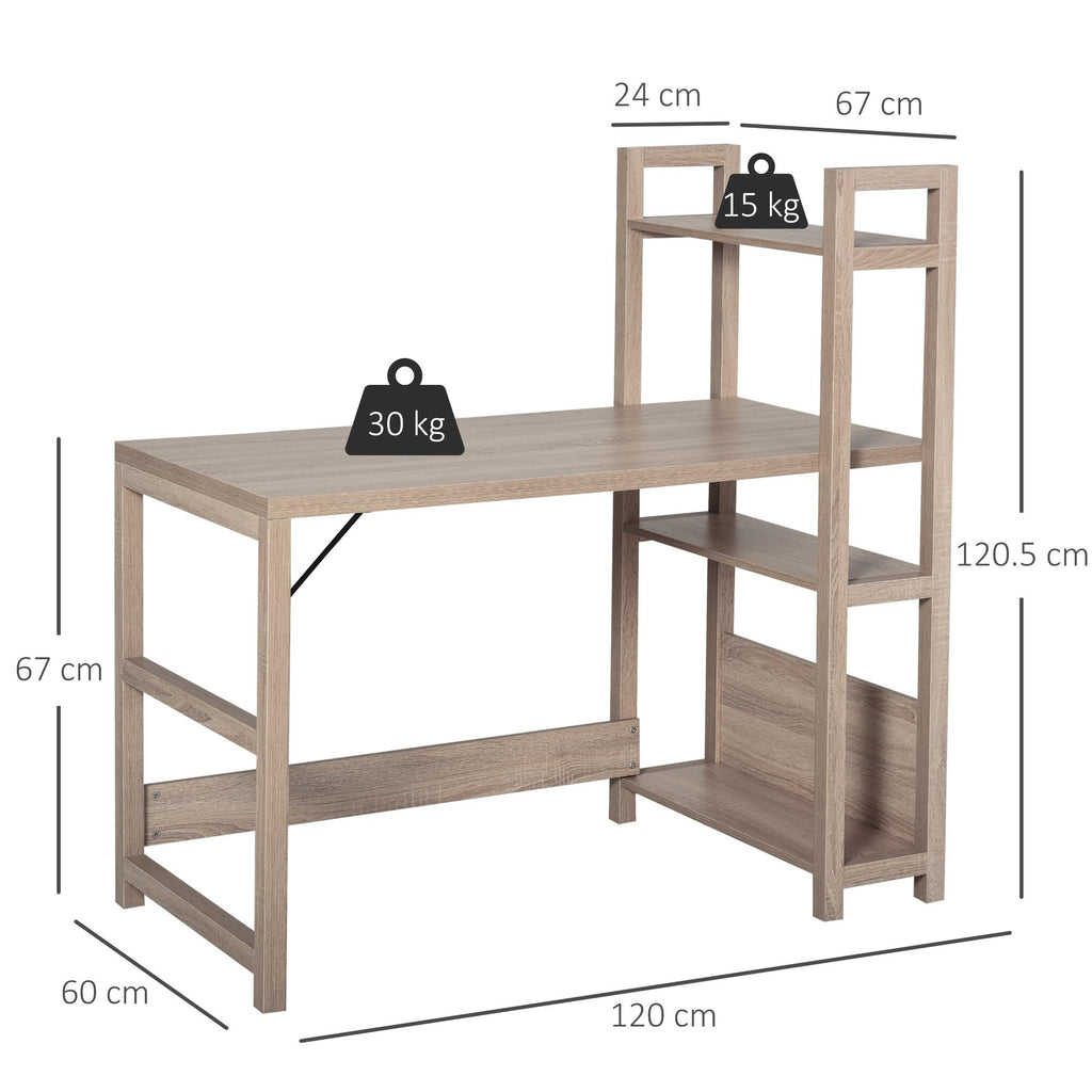 Schreibtisch-PC-Halter 120 x 67 x 120,5 cm mit Eichenholz-Bücherregal