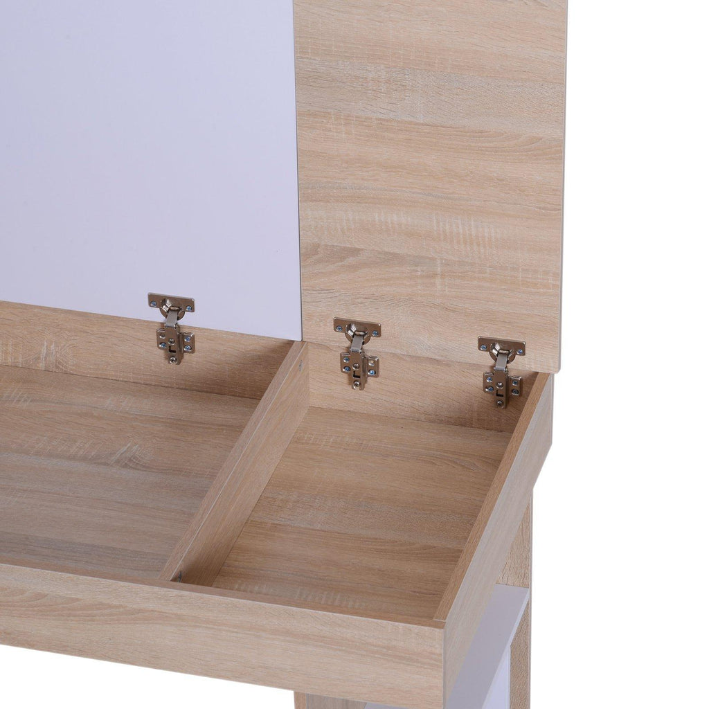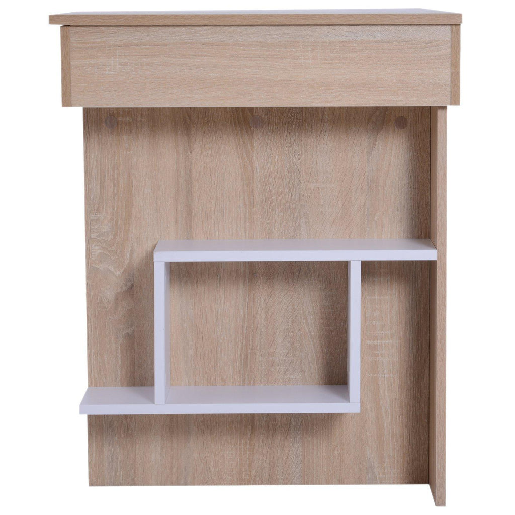 Es bietet ausreichend Platz für Computer, Drucker und mehr und verfügt über ein verstecktes Regal in der Arbeitsplatte sowie ein Seitenregal.