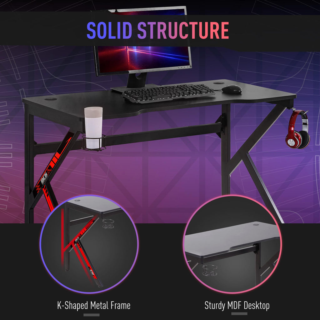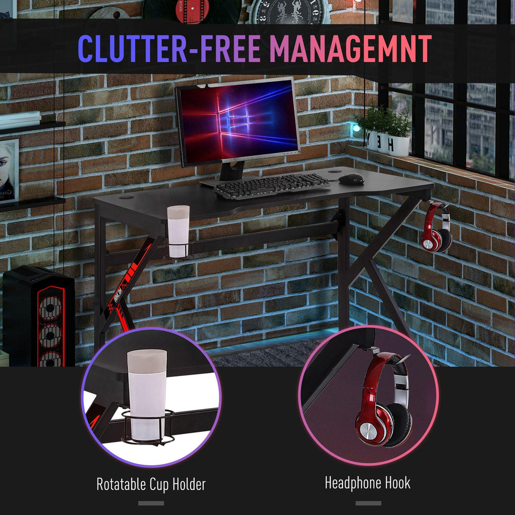 Gaming Schreibtisch 120x60x73 cm aus MDF und schwarzem Metall