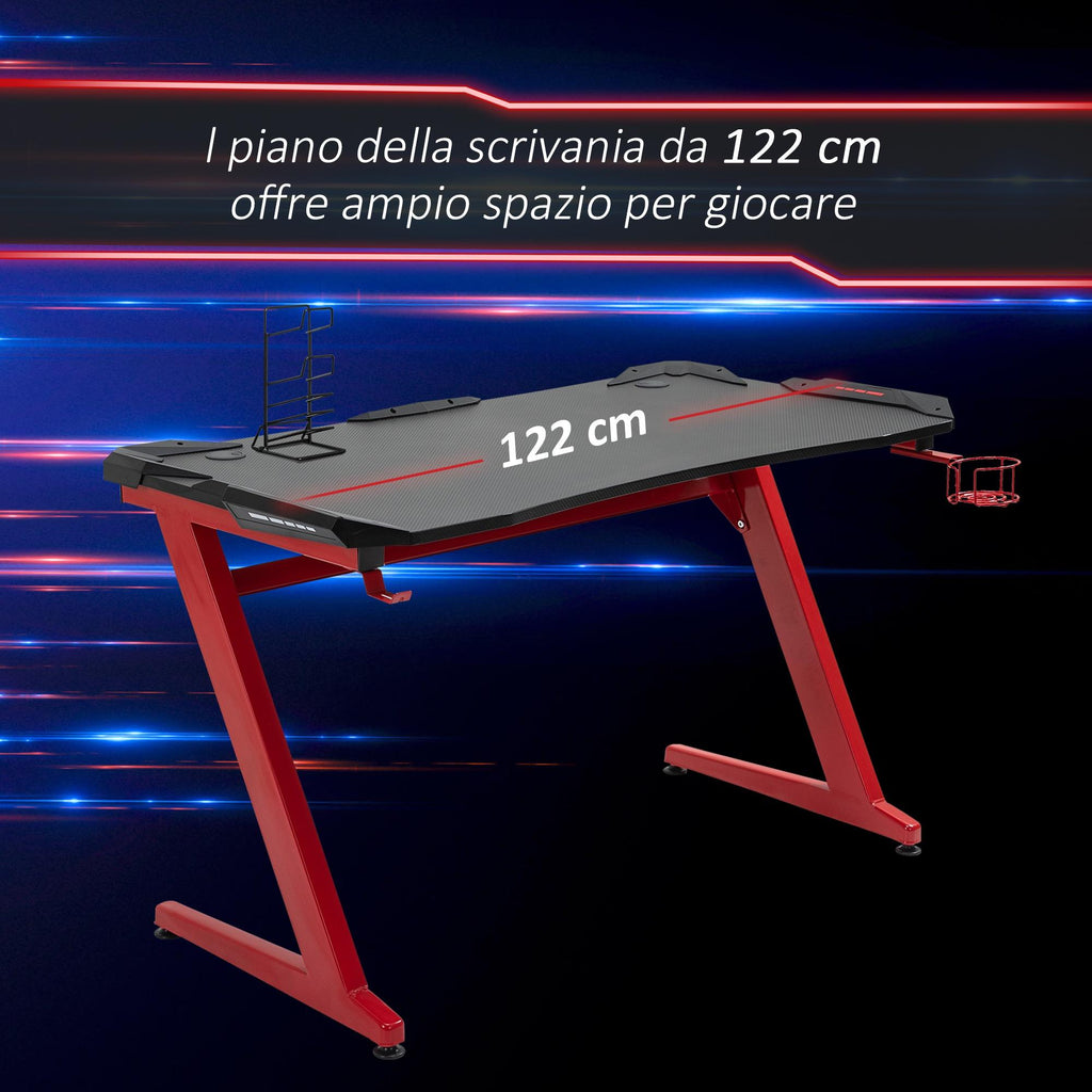 Gaming-Schreibtisch 122 x 66 x 96 cm aus Metall und schwarzem und rotem Holz