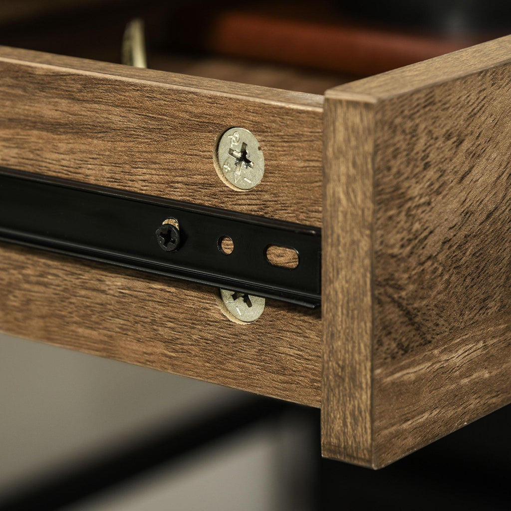 Benötigen Sie einen praktischen Schreibtisch für Ihr Zuhause oder Büro, der einen Hauch von Eleganz verleiht? hat genau das Richtige für Sie! Dieser praktische moderne Schreibtisch im Industriestil bietet Ihnen eine große Tischplatte und 2 Schubladen, damit Sie jederzeit Ordnung halten können. Der Metallrahmen und die MDF-Platten sorgen für Stabilität der Struktur. Perfekt als Schlafzimmer- und Büroschreibtisch kombiniert er Zweckmäßigkeit und Stil in einem einzigen Produkt.