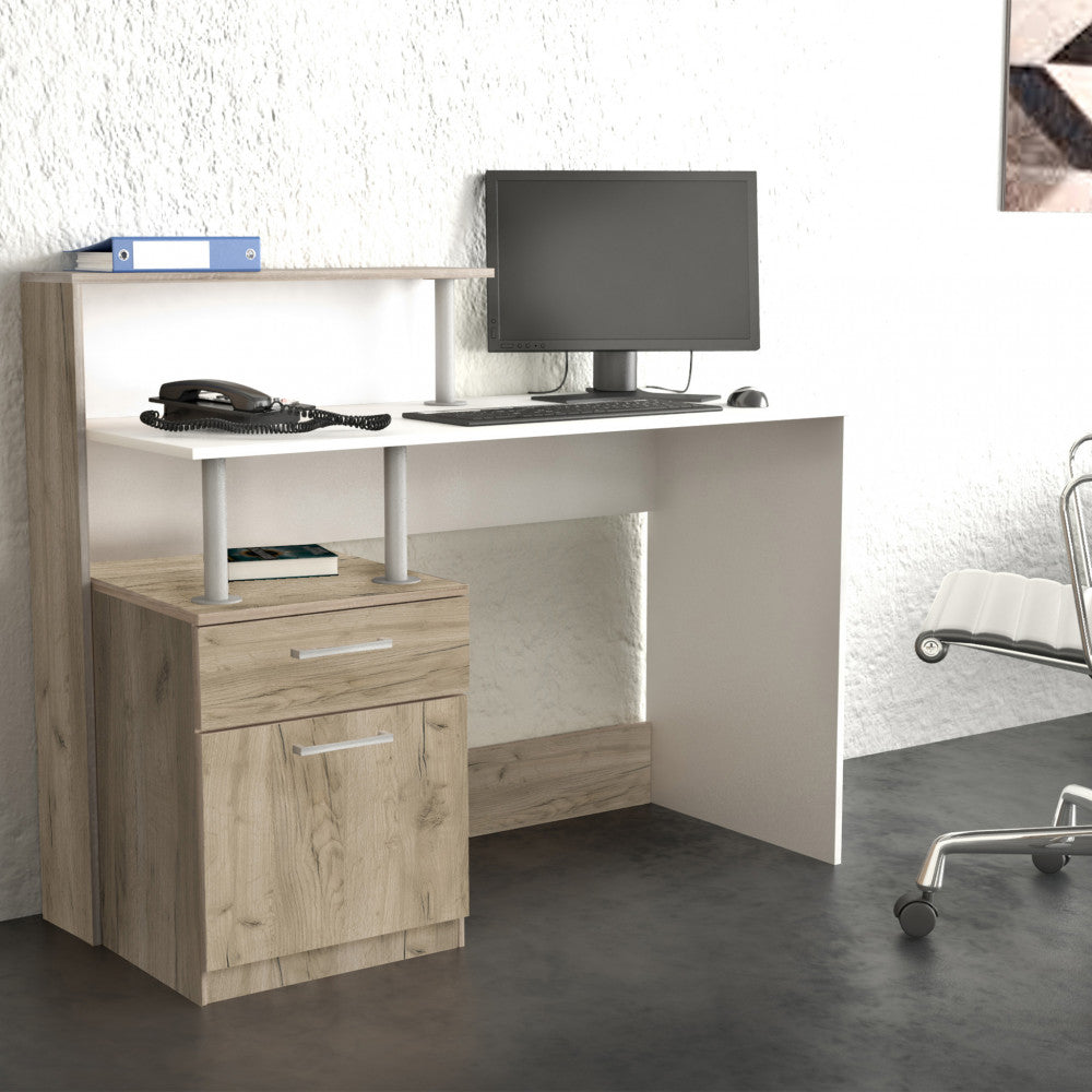 Schreibtisch Nasdaq 120 x 55 x 75/91 h cm aus zweischichtiger Spanplatte in Weiß und Ulme