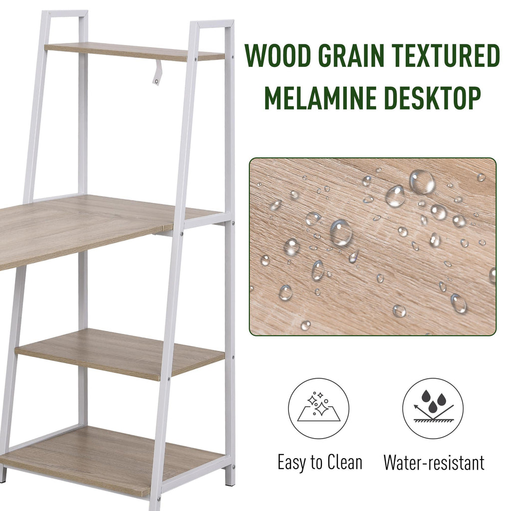 Möchten Sie eine angenehme Arbeitsumgebung schaffen? Dieser Schreibtisch mit Bücherregal von ist perfekt für Ihr Büro oder Arbeitszimmer. Mit einer eichenfarbenen Holzmaserung und einem Metallrahmen mit weißer Oberfläche ist es modern. Kombinieren Sie einen klappbaren Schreibtisch mit 4 offenen Regalen, um Ihren unterschiedlichen Bedürfnissen gerecht zu werden. Aus Metallrahmen und E1-Spanplatte gefertigt, ist es die beste Wahl für Ihr Büro, Arbeitszimmer, Esszimmer oder jeden begrenzten Raum.