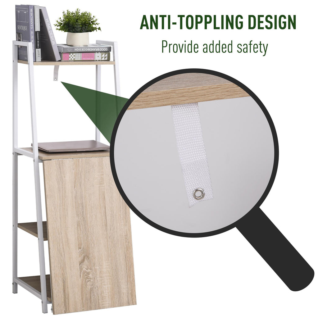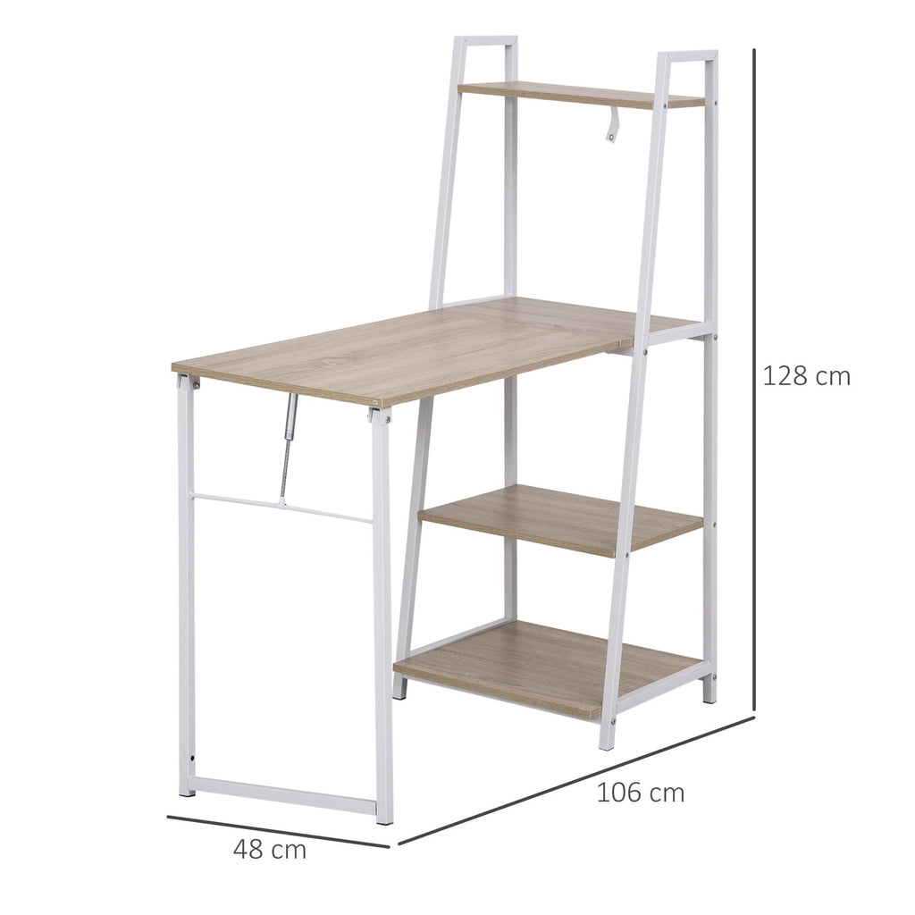 Klappbarer Schreibtisch 106 x 48 x 128 cm mit Bücherregal aus Holz und Metall in Weiß und Eiche