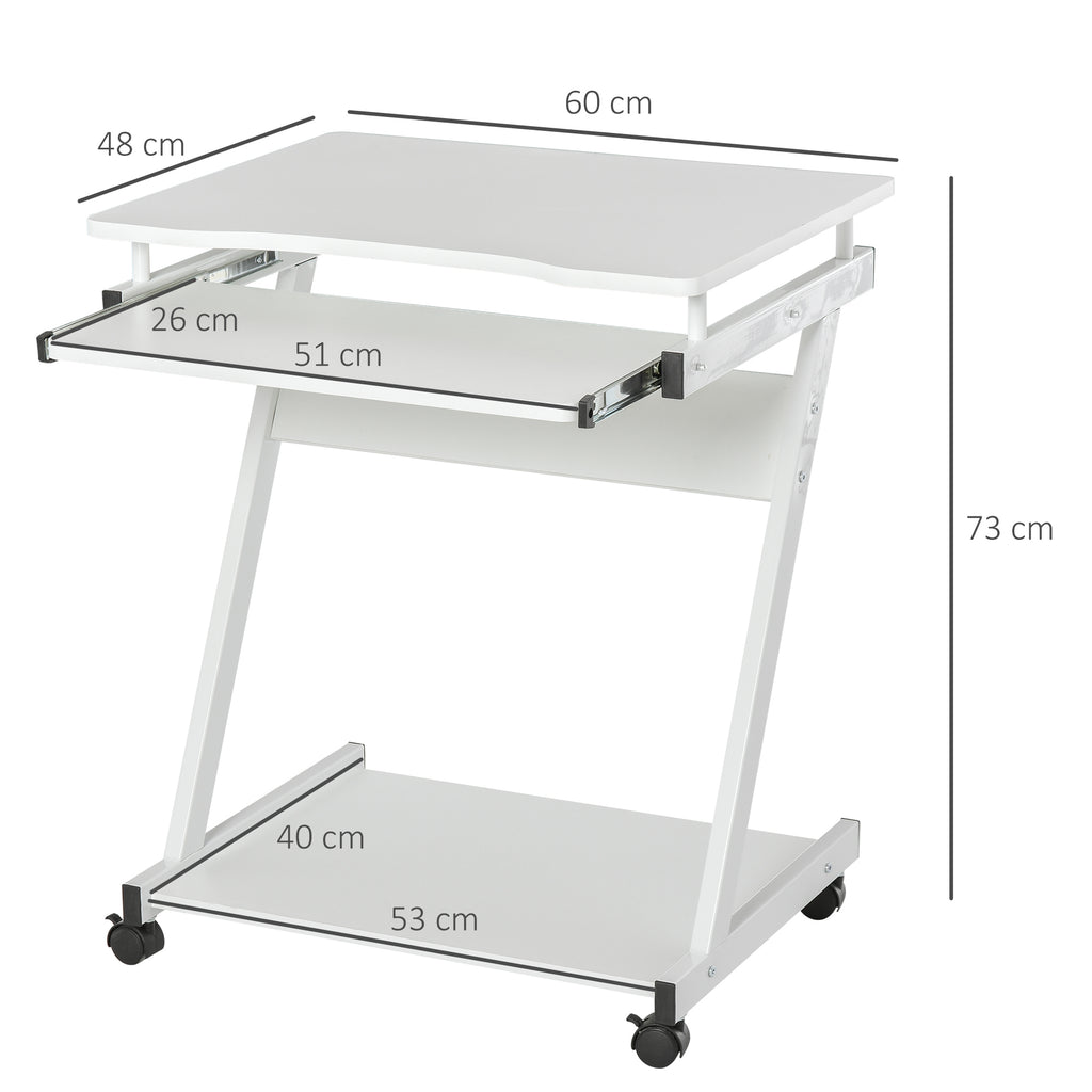 PC-Schreibtisch 60 x 48 x 73 cm mit weißen Rädern