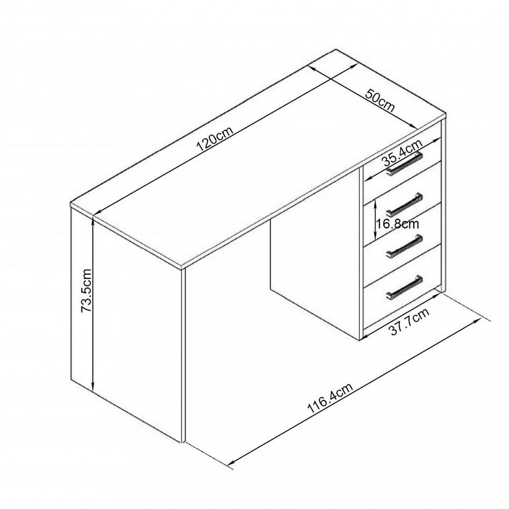PC-Halter Schreibtisch Topaz Helle Eiche 120 x 50 x 74 h cm in braun laminierter Spanplatte