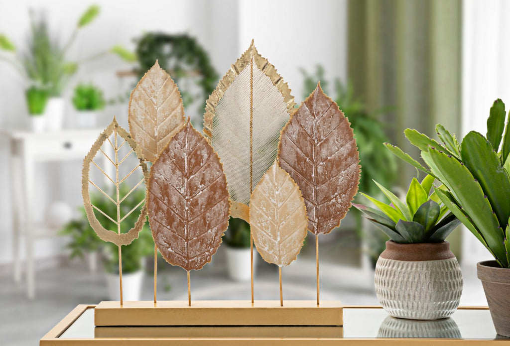 - Statua con piedistallo unica ed elegante composta da foglie di diverse forme e dimensioni