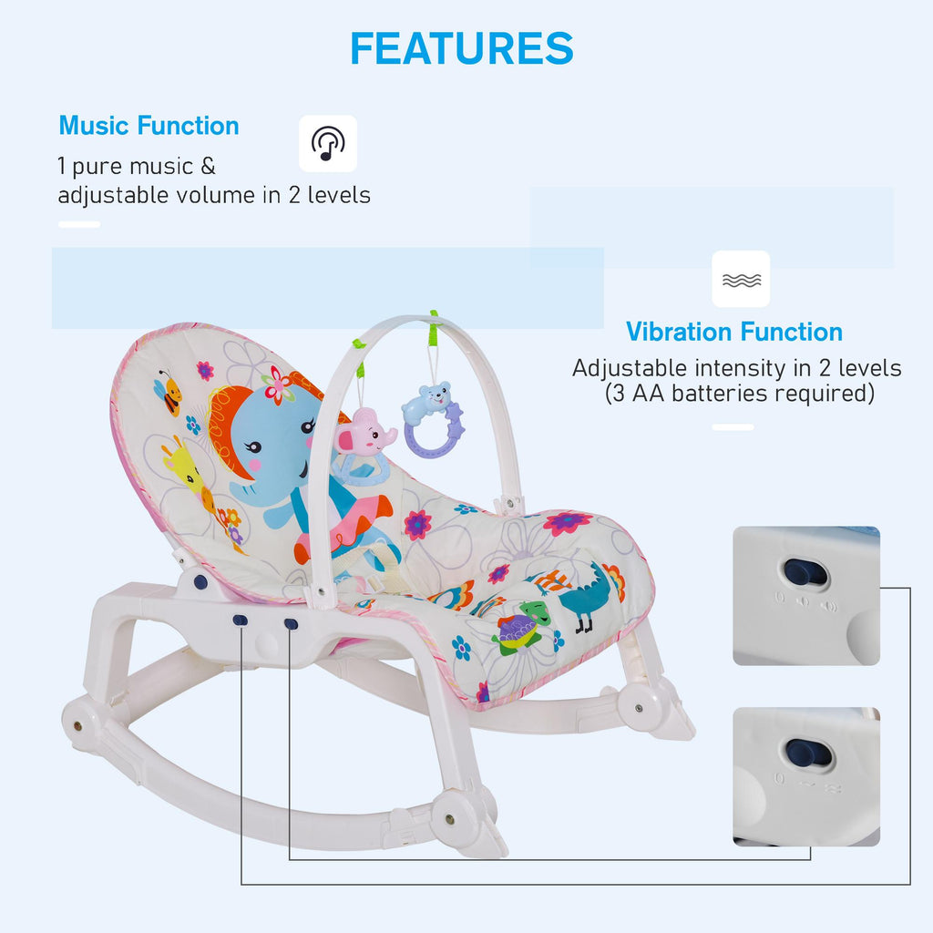 Der Schaukelstuhl bietet Eltern eine komfortable Lösung zum Schlafen, Pflegen und Spielen für Kinder. Zwei Modi: Schaukelstuhl und Stuhl, wählen Sie den gewünschten Modus. Der Dreipunkt-Sicherheitsgurt und die höhenverstellbare Rückenlehne sorgen für Sicherheit und Komfort. Musik- und Vibrationsfunktion sind enthalten, was es zu einem bequemen und gemütlichen Ort für Babys macht. Ob zu Hause oder unterwegs, Ihr Baby wird kuschelig und gemütlich gehalten!