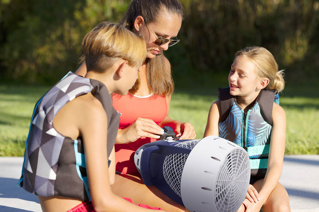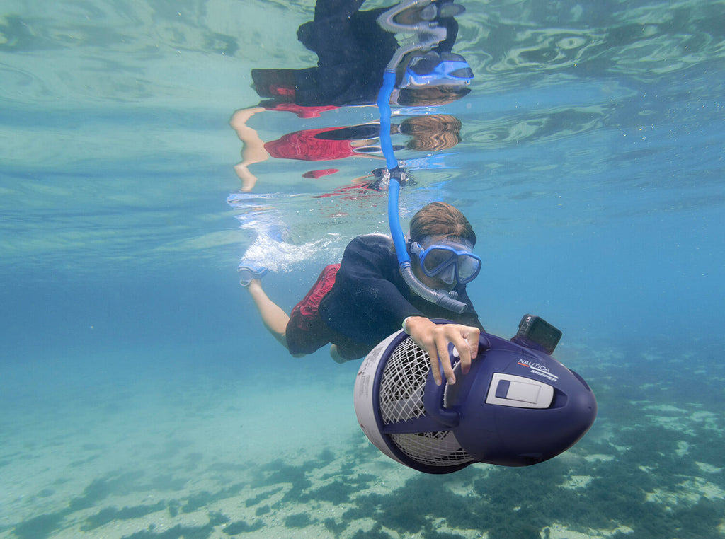 Il Seascooter elettrico Nautica modello Skipper è ideale, grazie al suo peso estremamente contenuto a soli 5,4Kg, per per avviare i bambini alle prime avventure di Snorkeling, alle prime immersioni subacquee fino a 5mt di profondità, oppure per passare fino a 90 minuti di puro divertimento acquatico con una sola carica della batteria. Al mare, al lago o in piscina il DPV Nautica Skipper è da utilizzare sempre sotto la supervisione di un adulto.