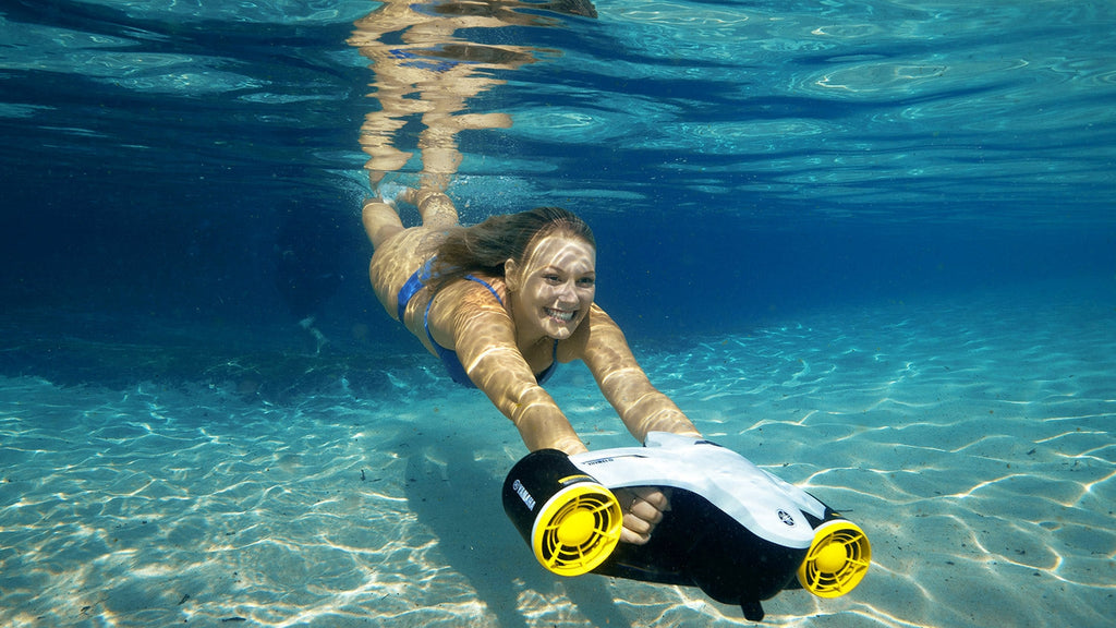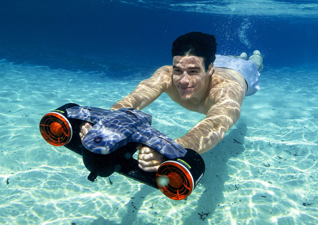 Das schlanke, kompakte und einfach zu bedienende SEAWING II ermöglicht Benutzern das Schnorcheln, Schwimmen oder Tauchen unter Wasser bis zu einer Tiefe von 30 m .