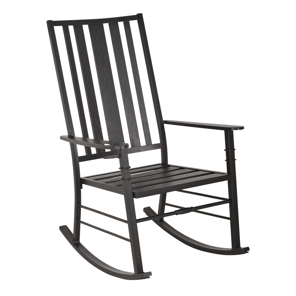 Ideal für heiße Sommertage auf der Veranda oder Winterabende zu Hause, Sie werden diesen Schaukelstuhl nicht mehr missen wollen! Es hat eine solide Stahlkonstruktion mit einer breiten Sitzfläche und einer hohen Rückenlehne, die Ihnen eine ideale Unterstützung zum Entspannen bieten. Der Gartenschaukelstuhl verfügt außerdem über einen praktischen Getränkehalter an der Armlehne, damit Sie Ihre Getränke beim Schaukeln immer griffbereit haben. Genießen Sie Ihre Tage in diesem Stuhl!