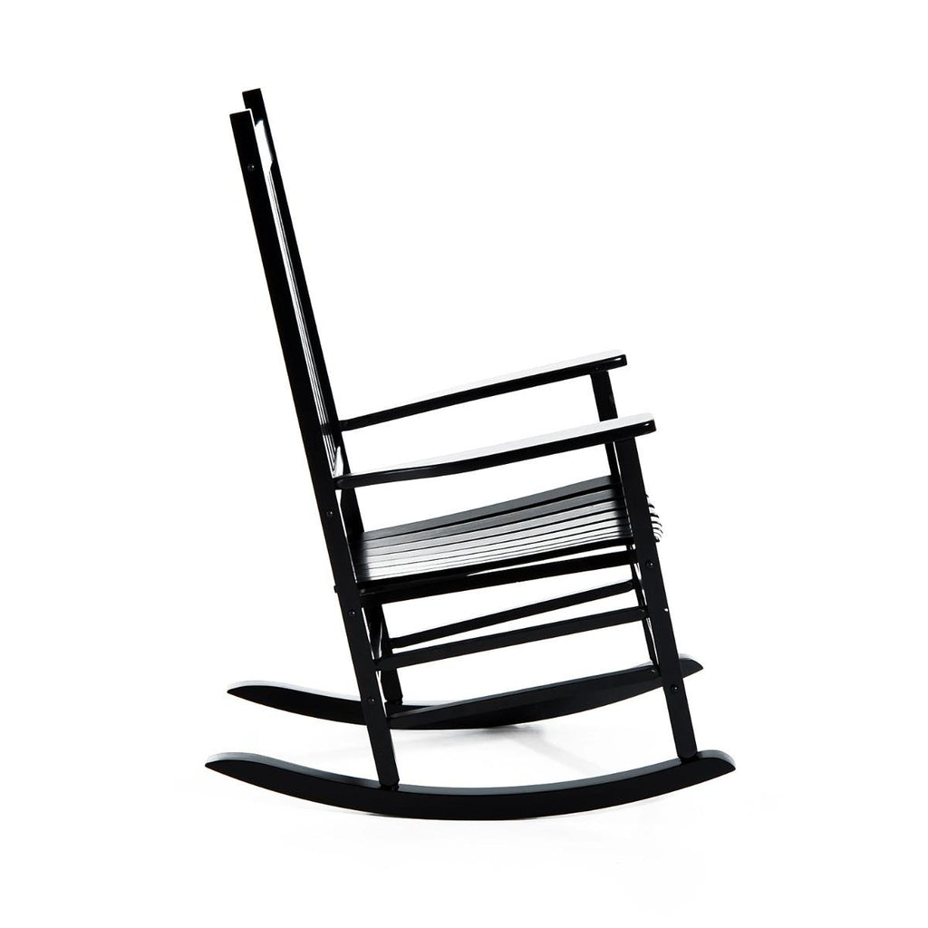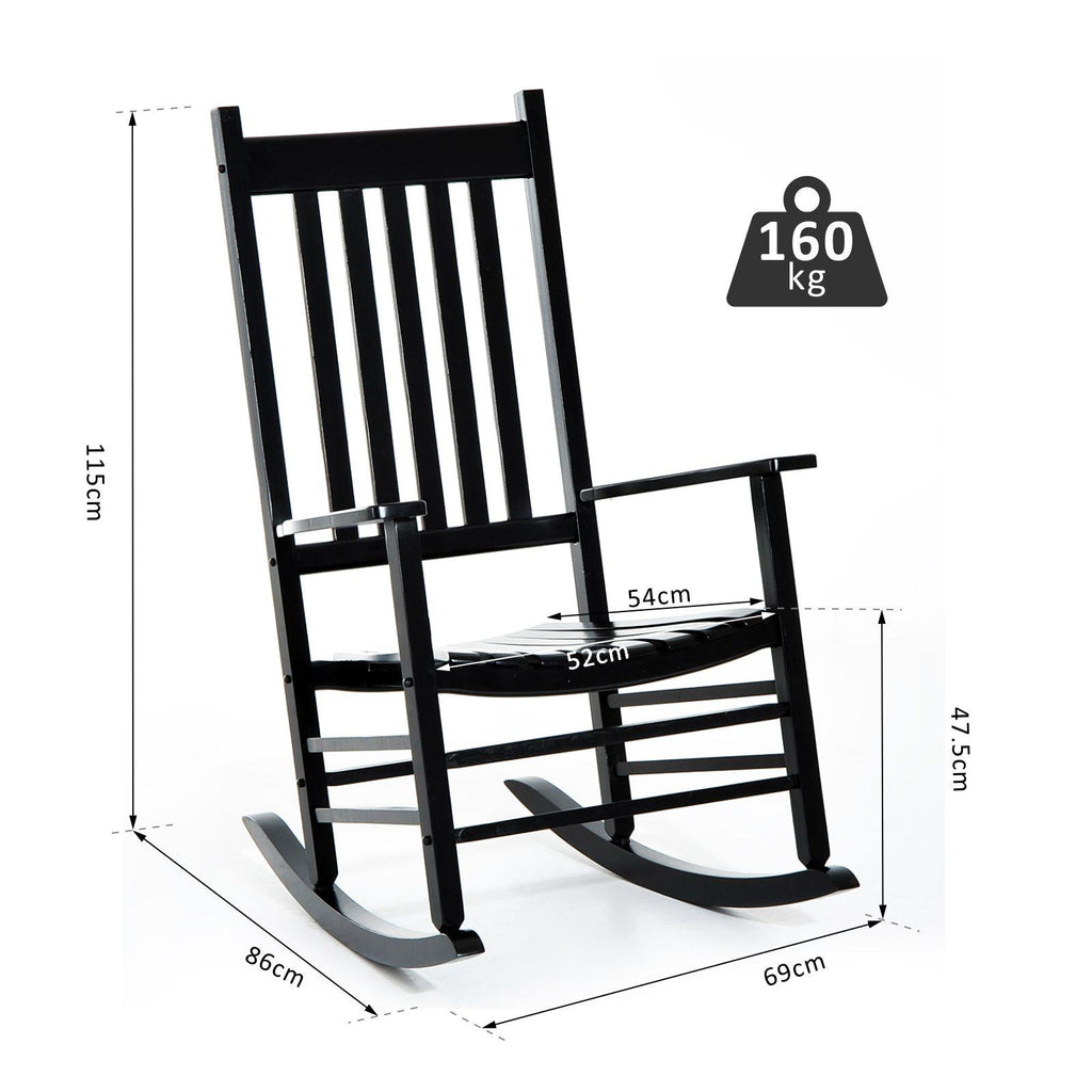 Tauchen Sie mit diesem Schaukelstuhl in den altmodischen Charme ein. Aus Pappelholz gebaut und mit schwarzer Farbe lackiert, hat es eine glatte und gleichmäßige Oberfläche, die gegen schlechtes Wetter beständig ist. Dank der hohen Rückenlehne und der breiten Sitzfläche ist er ergonomisch geformt, perfekt, um sich in die Welt der Entspannung entführen zu lassen.