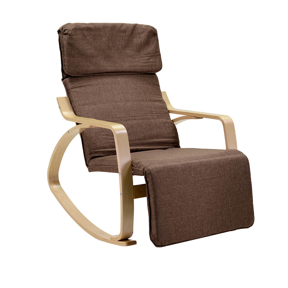Schaukelstuhl aus Stoff und Holz mit Kissen und Fußstütze 67x130xH95cm Adami Brown