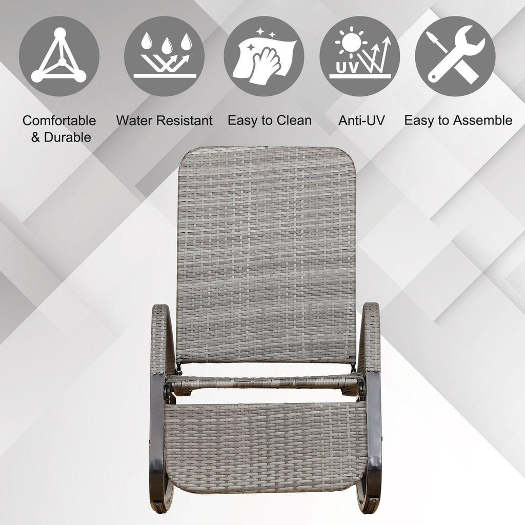 Dieser Schaukelstuhl ist perfekt zum Entspannen am Pool oder auf der Terrasse. Sein ergonomisches und funktionales Design zeichnet sich durch einen Stahlrahmen, eine synthetische Rattanstruktur, eine neigbare Rückenlehne und eine abnehmbare Fußstütze aus. Nehmen Sie Platz in diesem fantastischen Sessel, lassen Sie die Seele baumeln und entspannen Sie an der frischen Luft!