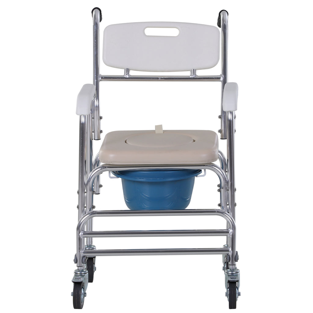 Dieser Rollstuhl mit Toilette wurde entwickelt, um Menschen mit eingeschränkter Mobilität bei ihren täglichen Aktivitäten zu unterstützen. Der Rahmen ist robust und leicht, besteht aus Aluminium und wird von einem gepolsterten Sitz und einer gepolsterten Rückenlehne, einer abnehmbaren Schüssel und 4 Rädern mit Bremsen begleitet. Dieser von produzierte Stuhl ist eine Stütze, die älteren oder behinderten Menschen helfen kann, ihre Unabhängigkeit und Privatsphäre wiederzuerlangen.