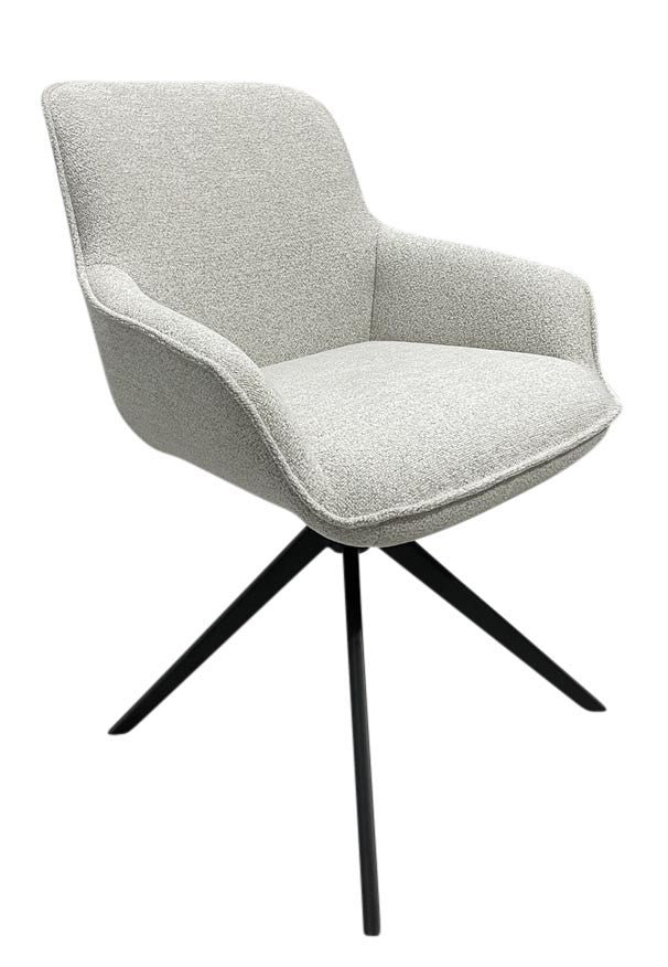 La sedia con braccioli presenta una seduta in compensato con imbottitura in schiuma poliuretanica, rivestimento in 100% poliestere. La sedia è girevole a 360° con meccanismo di ritorno. Le gambe sono in acciaio verniciato a polvere epossidica e richiedono assemblaggio. Questa combinazione di materiali offre comfort, funzionalità e uno stile moderno alla sedia. Con braccioli per un sostegno aggiuntivo, questa sedia è pensata per offrire una soluzione pratica e decorativa in vari contesti, come uffici o spazi di lavoro.