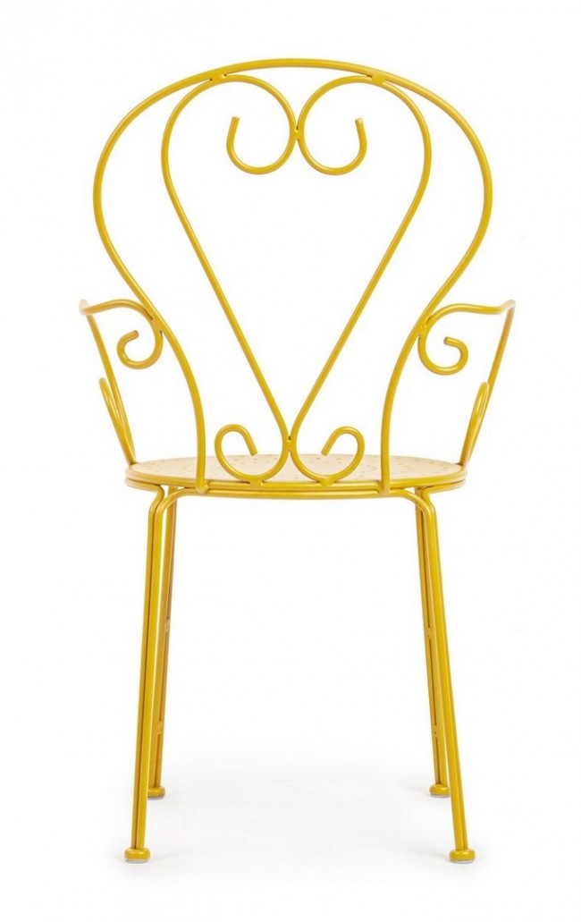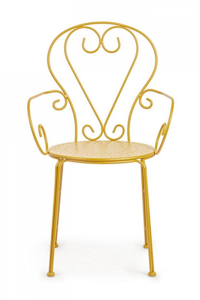 Etienne Stuhl aus ockerfarbenem Metall mit Armlehnen