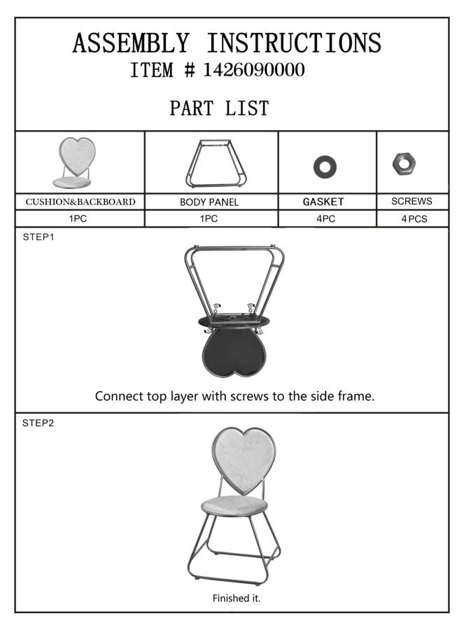 Stuhl mit Herz-Rückenlehne 37x47x80 cm aus Metall und gepolstertem Stoff