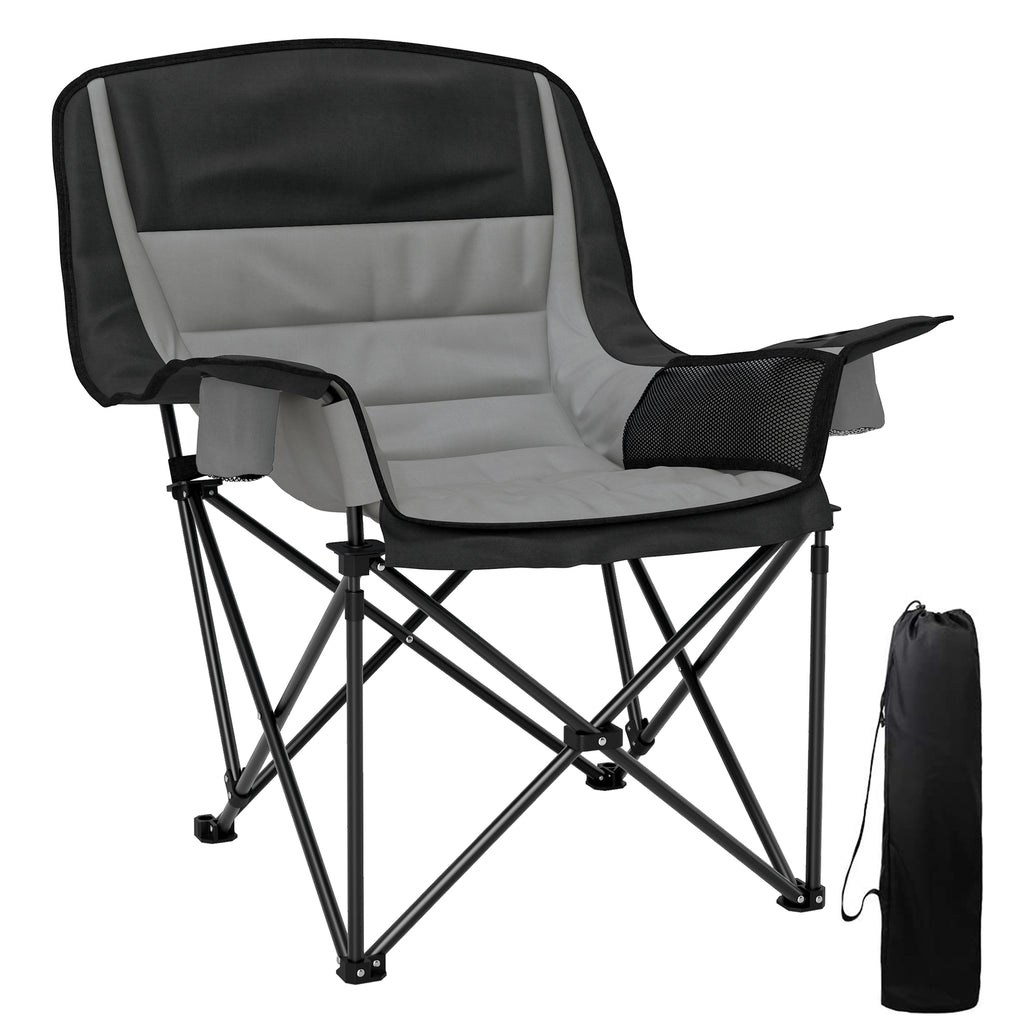 Sedia da Campeggio Pieghevole 99x71x103 cm con 2 Portabicchieri e Tasche Laterali Grigio e Nero