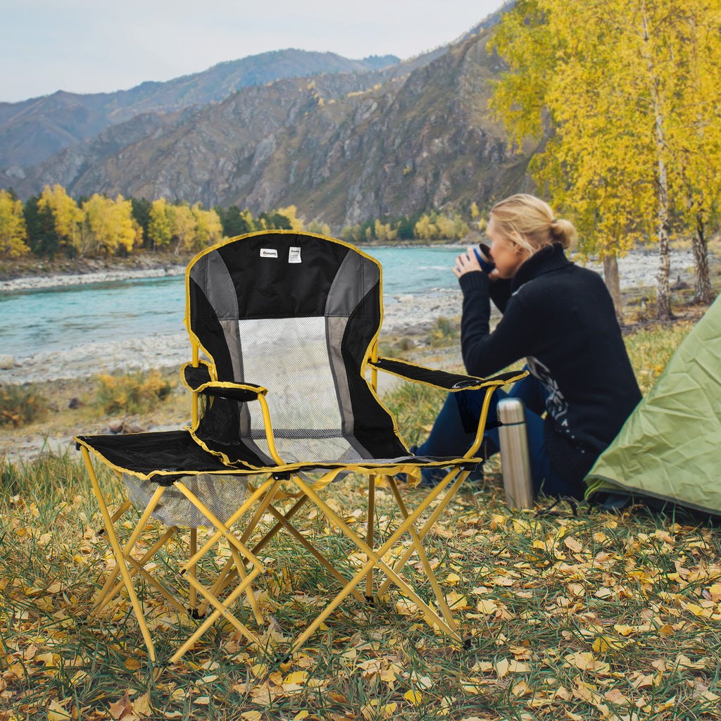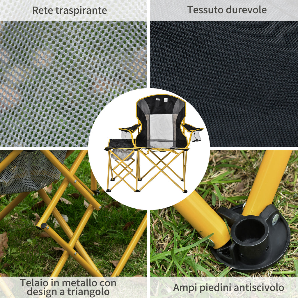 Klappbarer Campingstuhl aus Metall und schwarzem und gelbem Stoff
