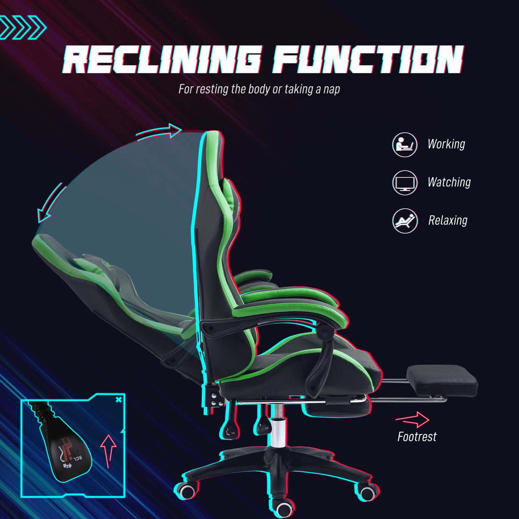 Sedia da Gaming Altezza Regolabile e Schienale Reclinabile 65x65x121-129 cm Nero e Verde