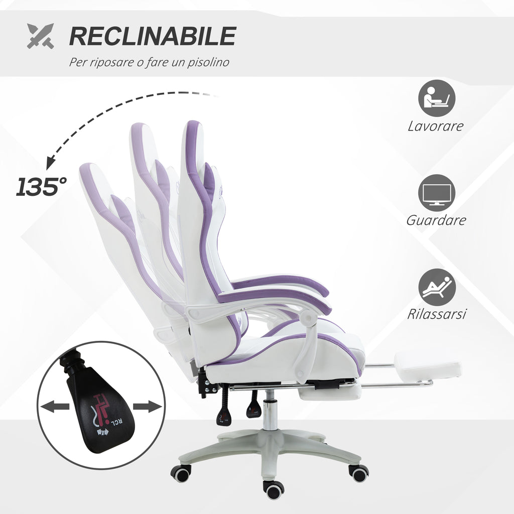 Sedia da Gaming con Schienale Reclinabile 65x65x121-129 cm in Finta Pelle PU Bianco e Viola
