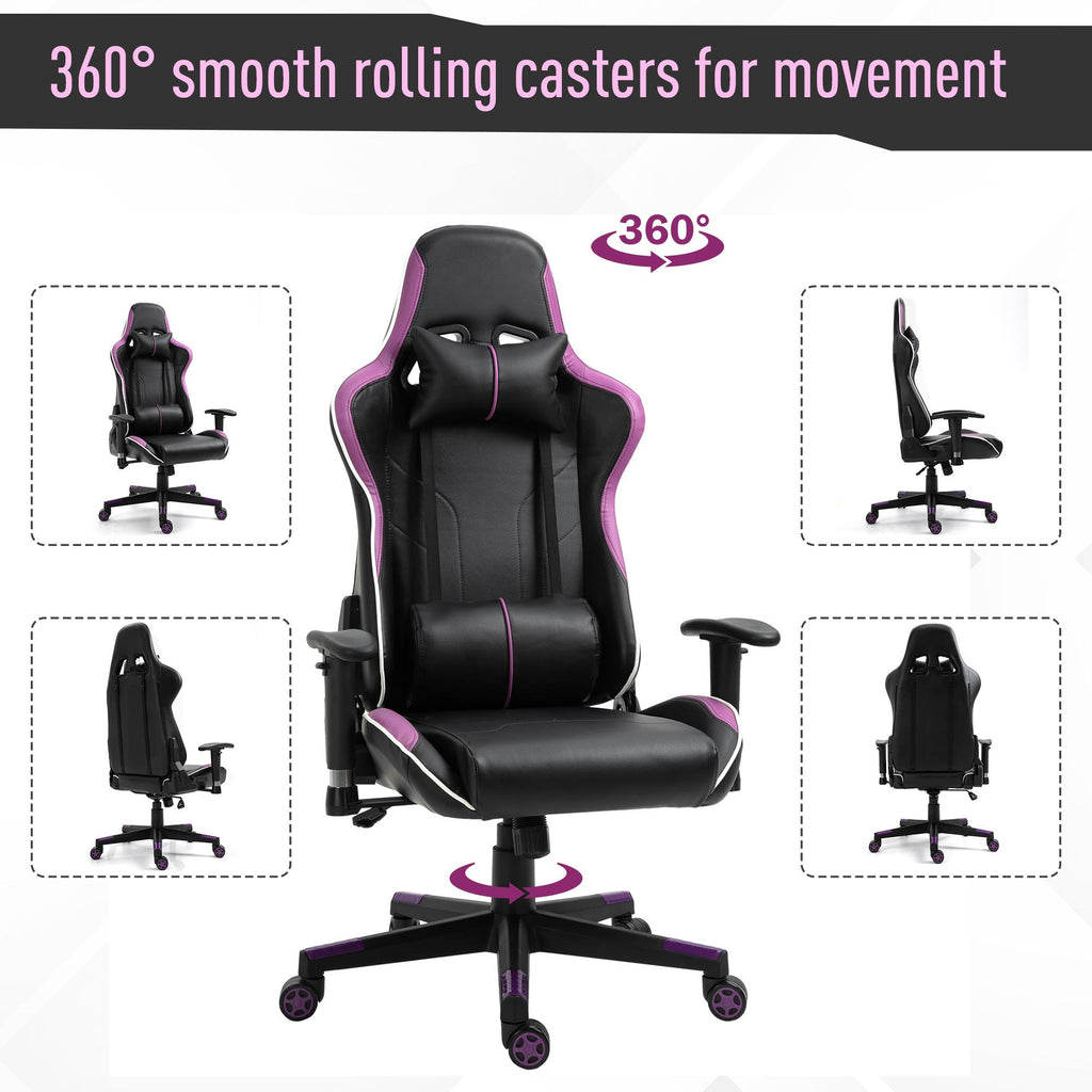 Ergonomischer Gaming-Stuhl 72 x 54 x 126-136 cm in schwarzem und violettem PVC
