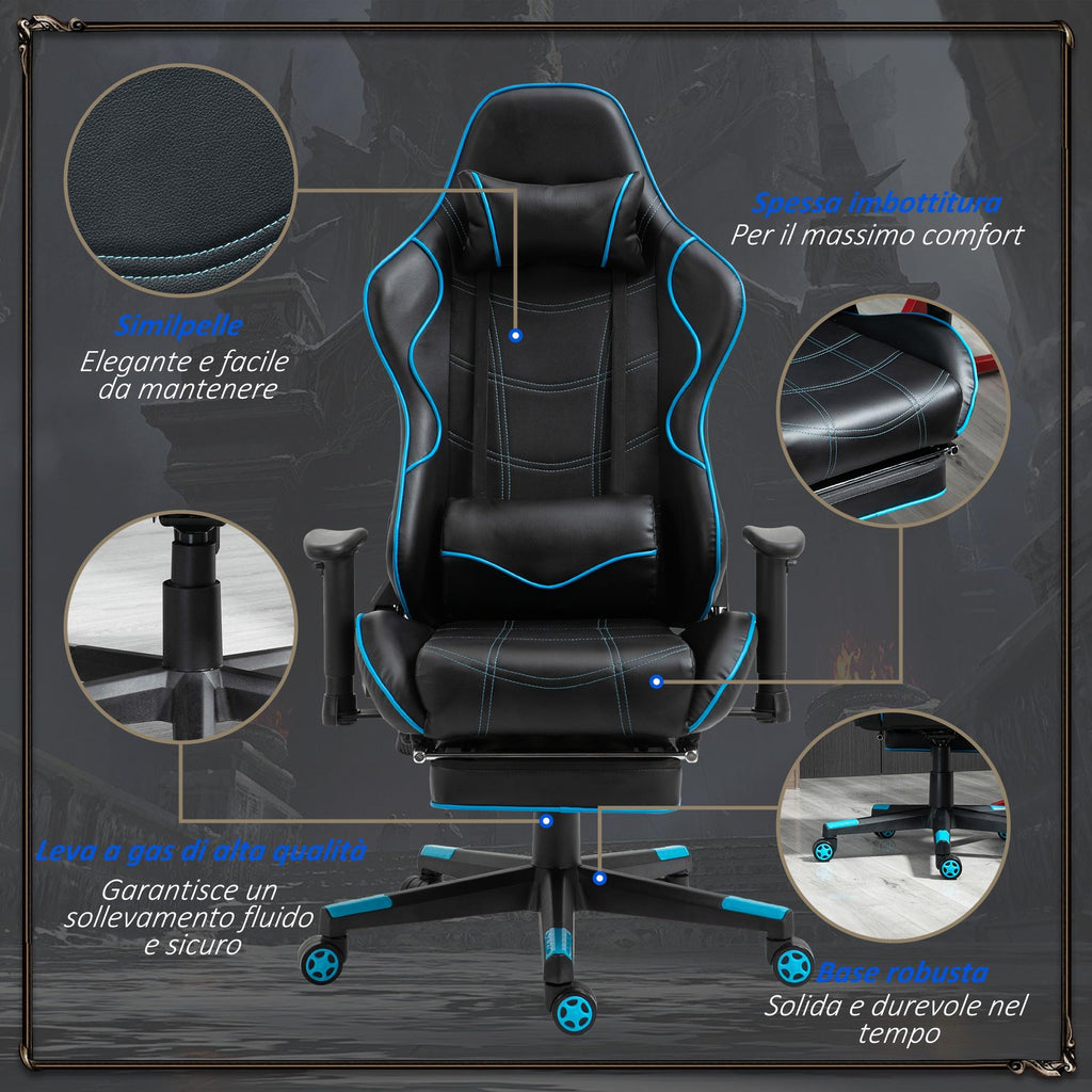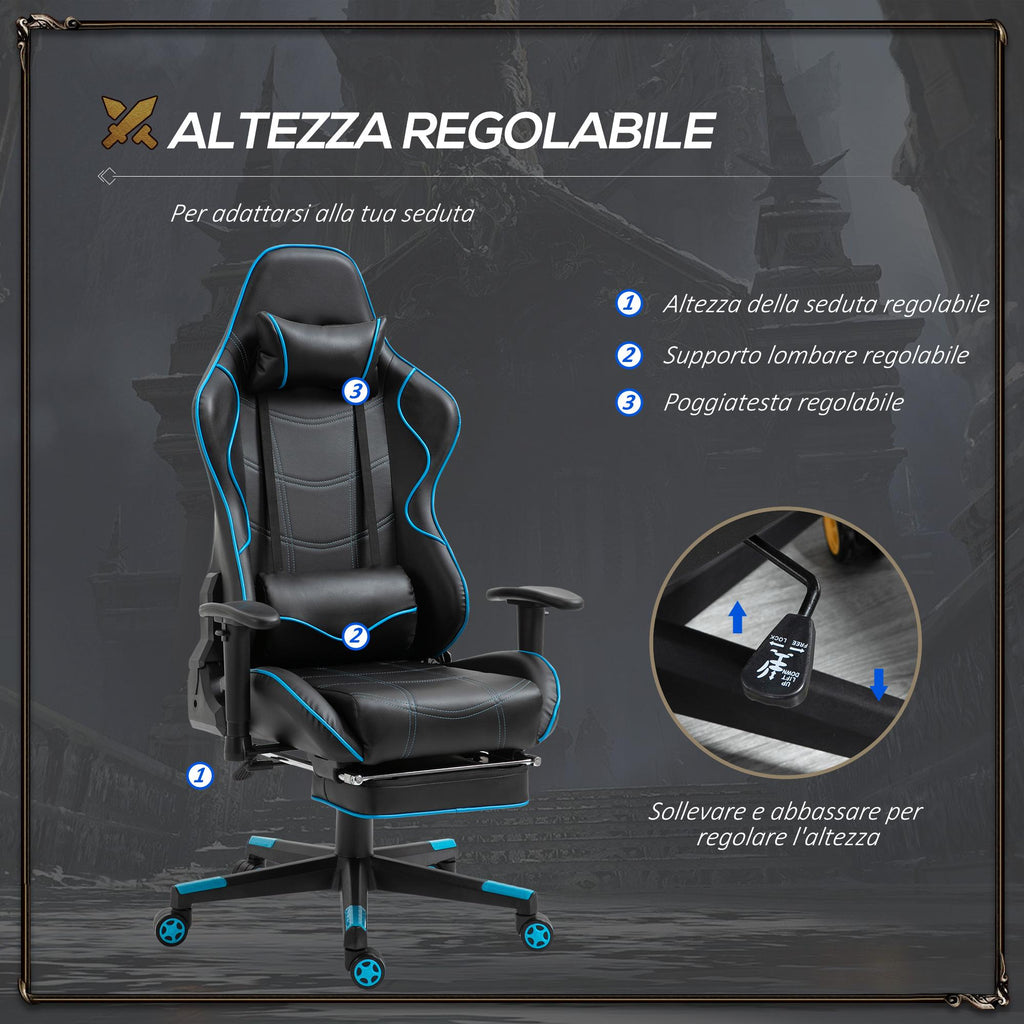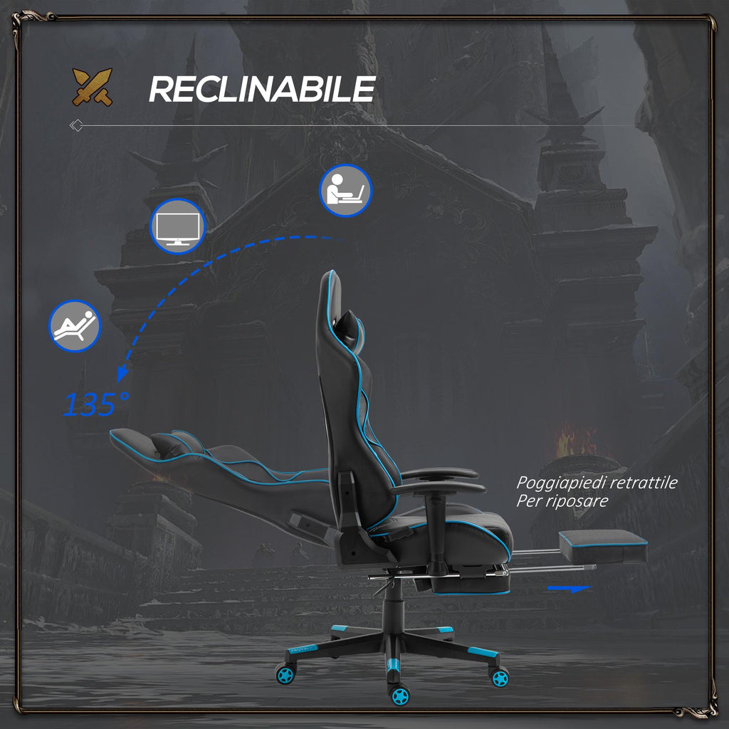 Ergonomischer Gaming-Stuhl 72x77x128-138 cm mit Fußstütze aus schwarzem Kunstleder
