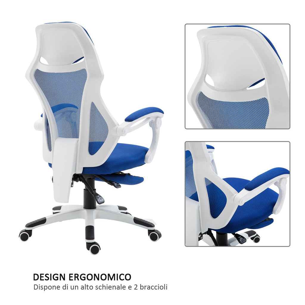 Ergonomischer drehbarer und neigbarer Gaming-Stuhl mit Fußstütze Blau