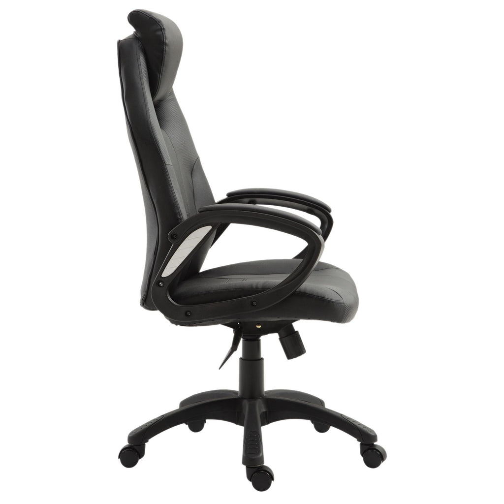 - Maximaler Komfort mit gepolsterter Lordosenstütze, Kopfstütze und dicken Armlehnen