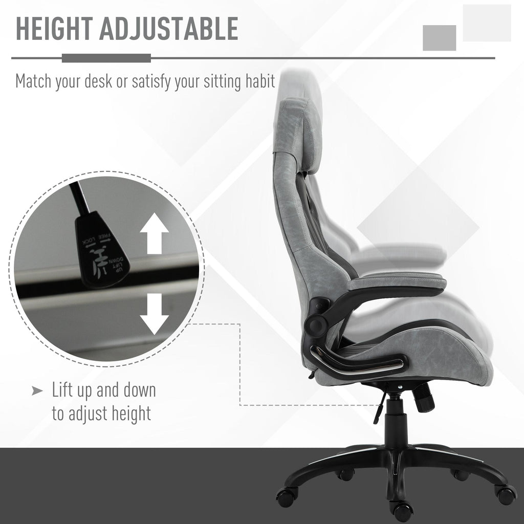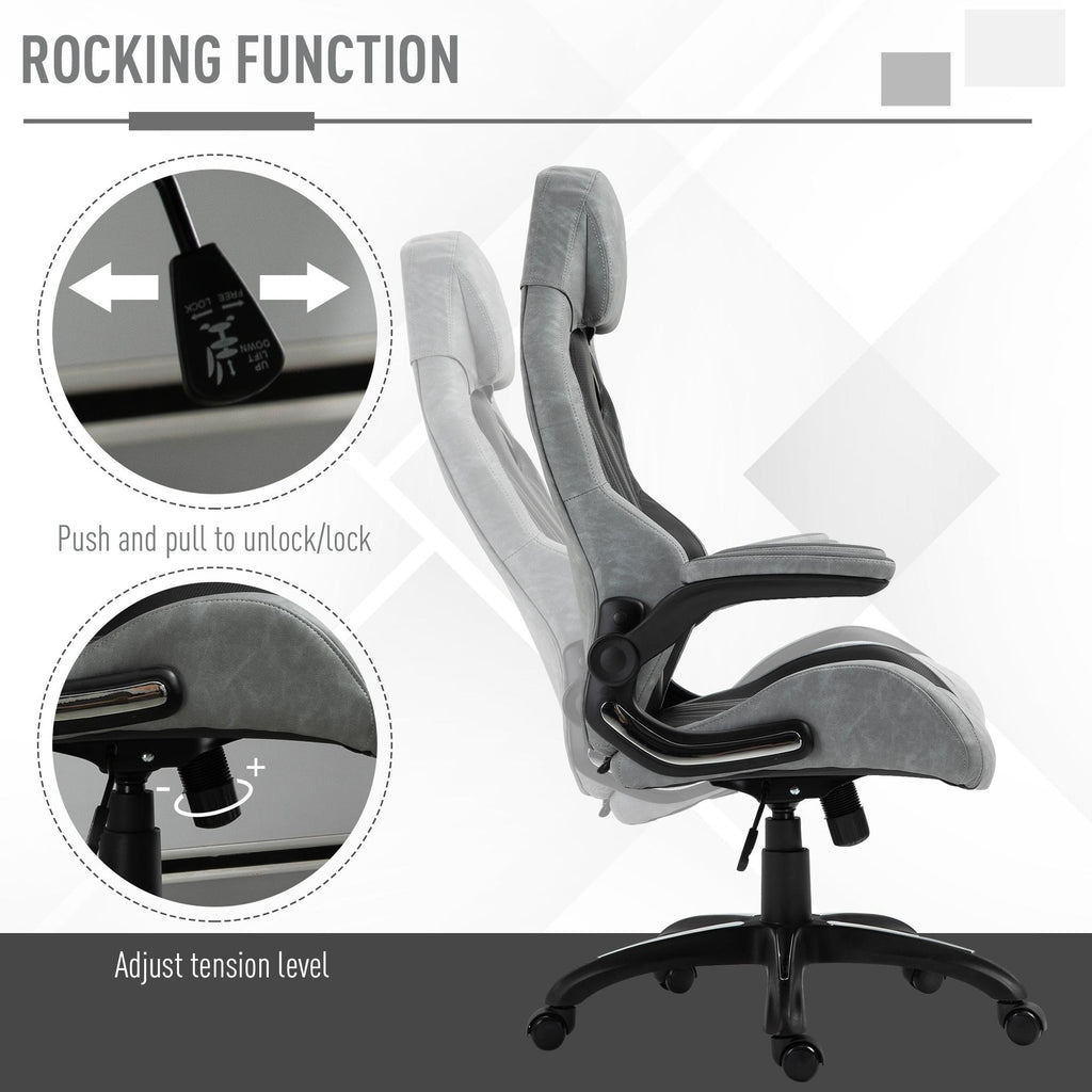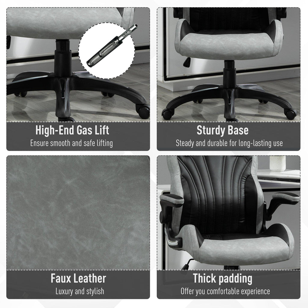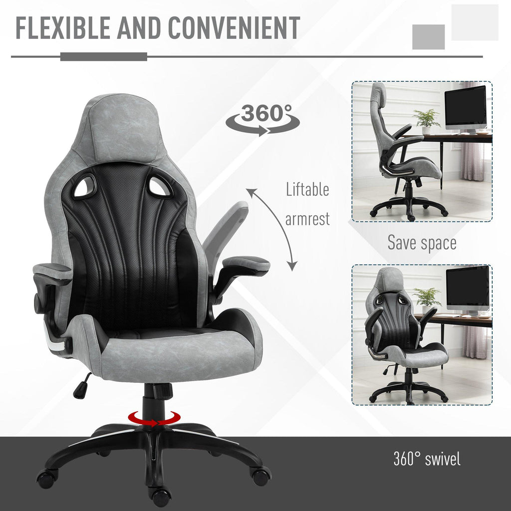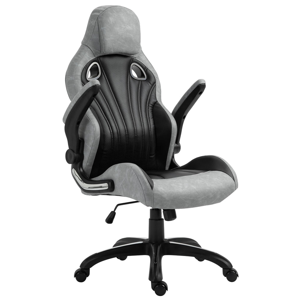 Drehbarer Gaming-Stuhl mit Liegefunktion aus schwarzem und grauem Kunstleder