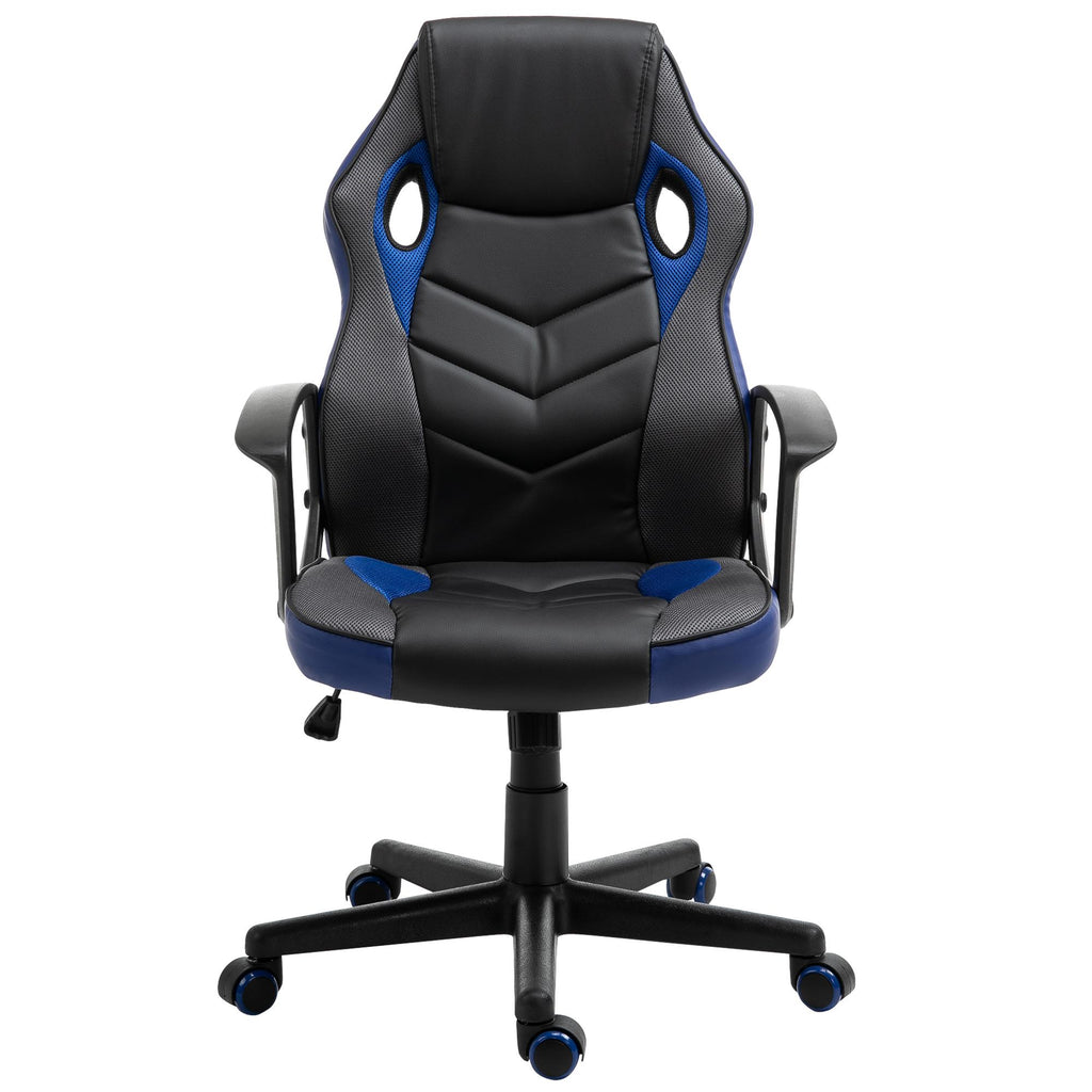 Drehbarer Gaming-Stuhl in schwarzem und blauem Kunstleder