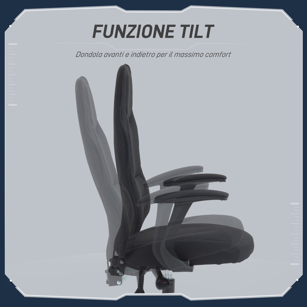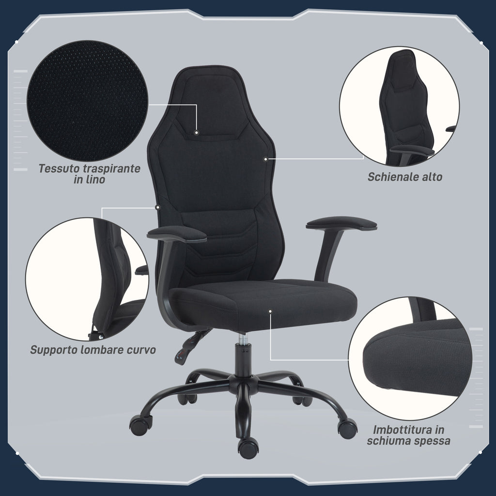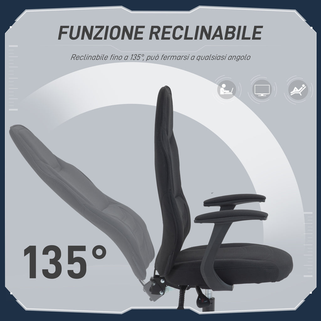 Sedia da Gaming Reclinabile con Supporto Lombare Altezza Regolabile e Seduta Girevole in Tessuto Nero