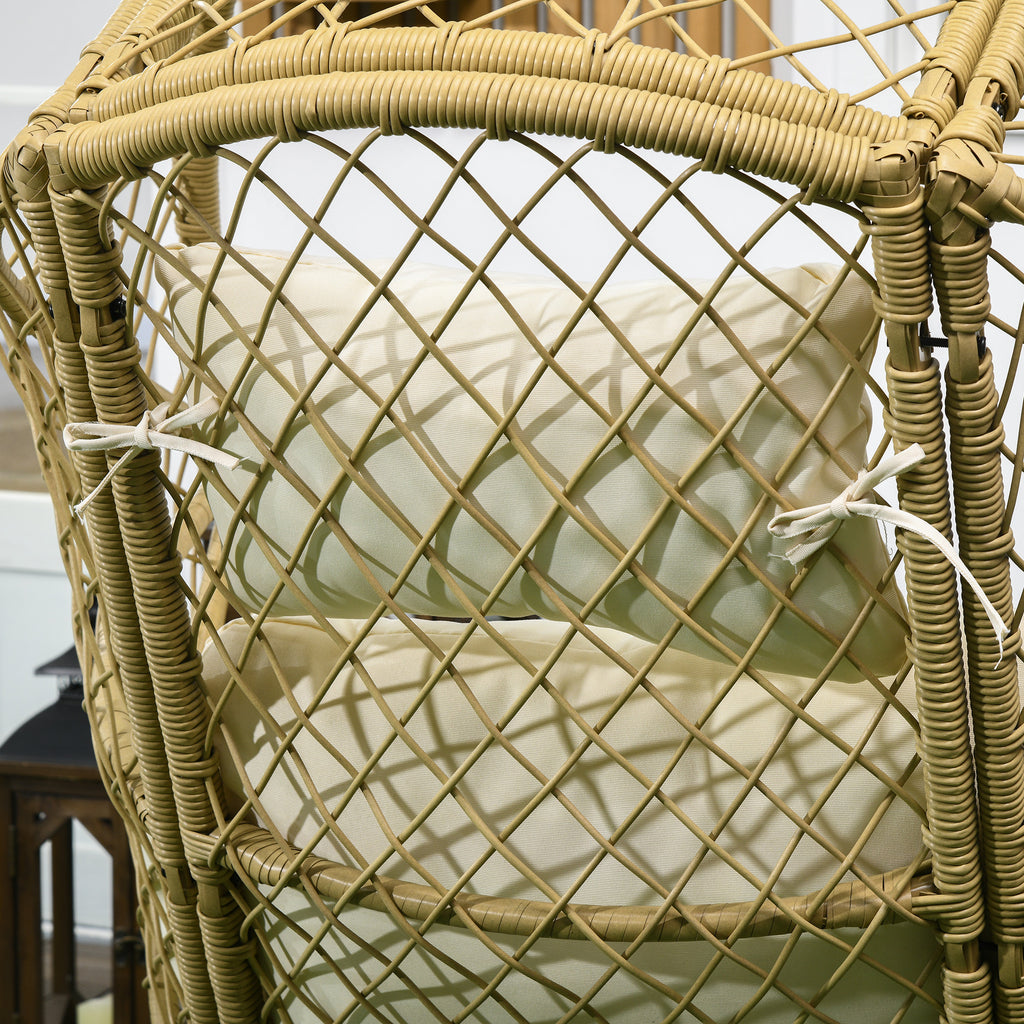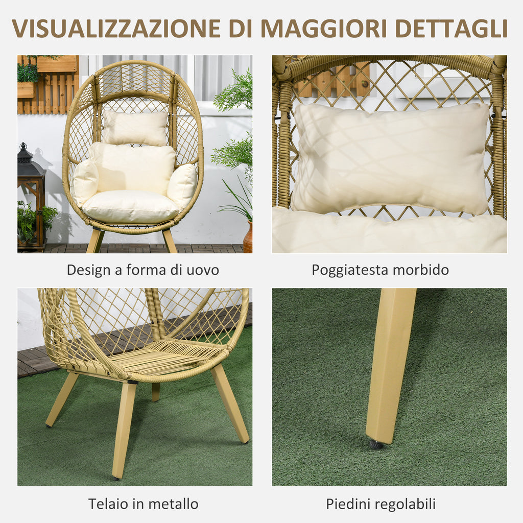 Sedia da Giardino a Uovo con Seduta Imbottita e Poggiatesta 88x85x143 cm in Rattan PE e Acciaio