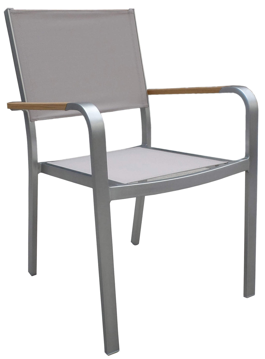 Gartenstuhl mit Armlehnen aus Aluminium und Textilene Vorghini Cortina Tortora