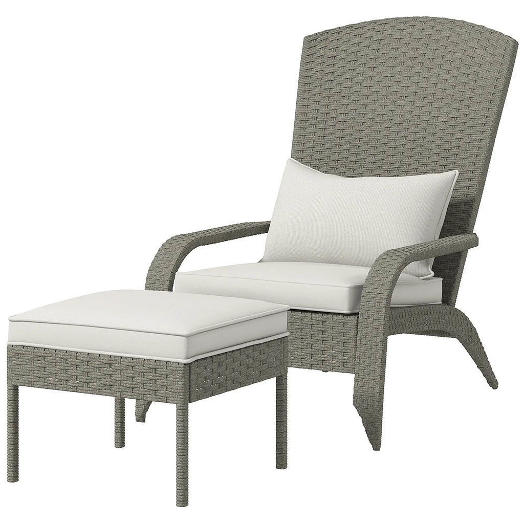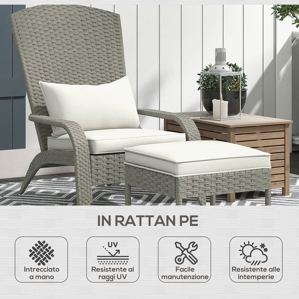 Sedia da Giardino con Poggiapiedi e Cuscini Imbottiti 64x82x89 cm in Rattan e Acciaio Grigio e Crema