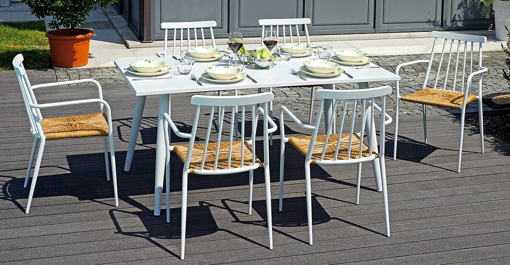 Vorghini Finale Ligure Gartenstuhl aus weißem Aluminium und Kunststroh