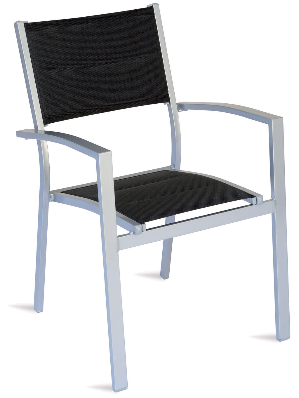- Sitz und Rückenlehne aus schwarzem, gepolstertem Textilene