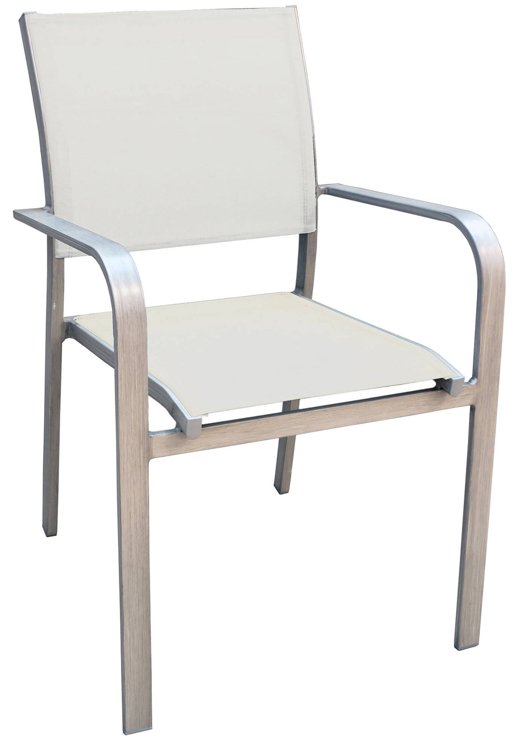 - Sitz und Rückenlehne aus hellgrauem Textilene