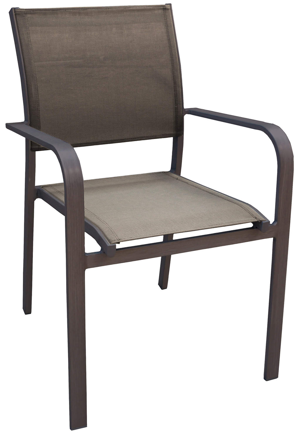 - Sitz und Rückenlehne aus dunkelbraunem Textilene