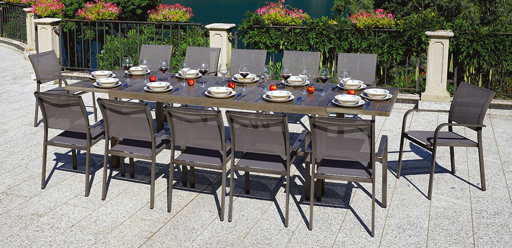 Gartenstuhl aus Aluminium in Holzoptik und Textilene Vorghini Crans-Montana Moro